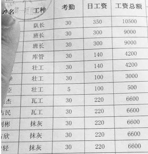 網(wǎng)上流傳的這張圖,也許很多人都不陌生,這是某個工地上建筑工人的工資單。班長收入過萬,普通的工人也可以達到6、7千,這或許對于一些普通企業(yè)中的基層員工而言,是一個值得羨慕的工資。