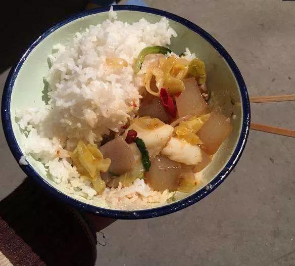 工人們中午只有一個多小時的時間休息,下班后就拿著自己的飯盒急急忙忙去打飯,一碗水煮菜,偶爾有些肉,配上一碗白米飯就是他們的午餐。飯菜是沒有什么油水的,但他們還得吃,吃不飽下午是干不動活的,越是要付出體力的工作,吃的卻也越粗糙簡單。只是為了保持體力,就多吃點,再短暫地瞇上一會,才經(jīng)得起下午超負荷的工作。