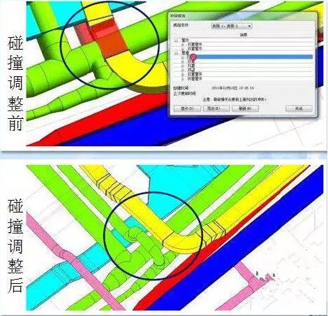 施工管理人員結(jié)合BIM三維建模過程中對設(shè)計(jì)圖紙進(jìn)行校核和深化;對建筑、結(jié)構(gòu)、機(jī)電安裝各專業(yè)圖紙進(jìn)行碰撞審核,從而在施工前解決圖紙的錯(cuò)漏問題。對機(jī)電安裝進(jìn)行管線綜合,保證精準(zhǔn)的管線綜合布置。再結(jié)合三維碰撞檢查,實(shí)現(xiàn)零碰撞。