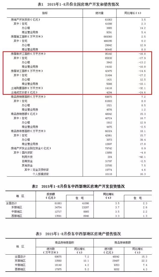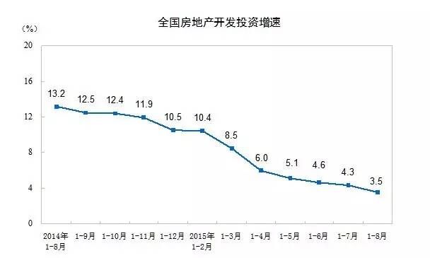 第一、房地產開發投資完成情況:2015年1-8月份,全國房地產開發投資61063億元,同比增長3.5%,增速比1-7月份回落0.8個百分點。