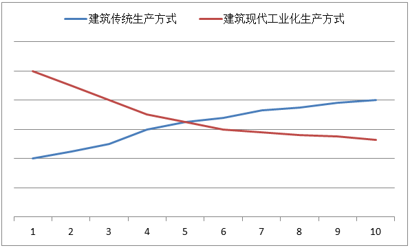 傳統生產方式的成本上升與工業現代化生產方式的成本下降,這是不可扭轉的發展趨勢!兩者終將在某個時間點相遇,當工業現代化生產方式下的成本低于傳統生產方式時,也是建筑工業現代化生產方式大面積取代建筑傳統生產方式的時間點。