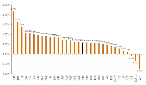圖表4:各省市區2016年常住人口同比增幅(大陸31個省市區)
