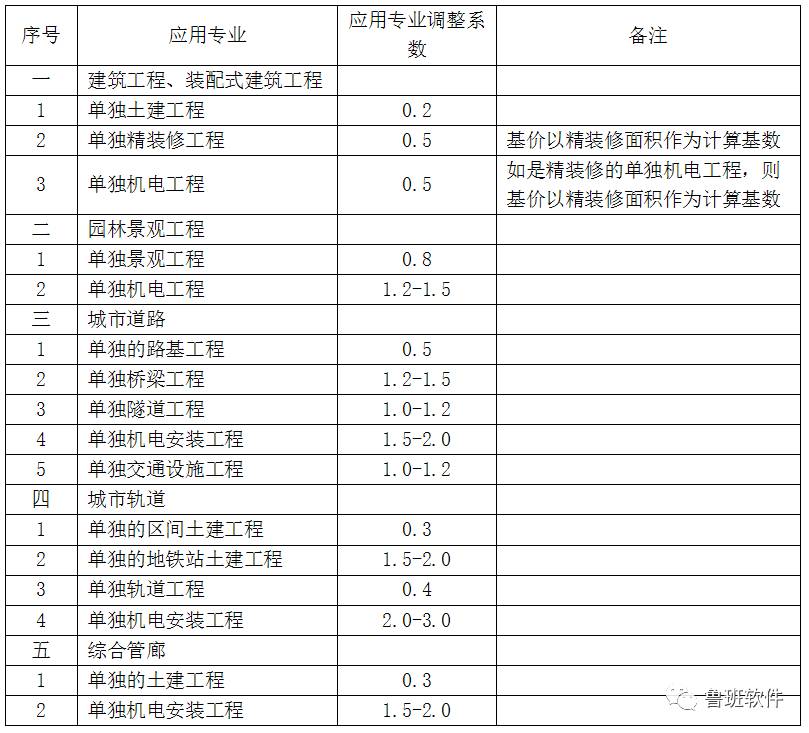 (2)非所有專業(yè)整體運用,僅為部分專業(yè)應(yīng)用時,按上表系數(shù)進行調(diào)整。