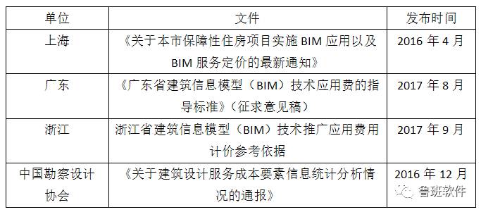 表1 國內(nèi)BIM收費標(biāo)準(zhǔn)相關(guān)政策