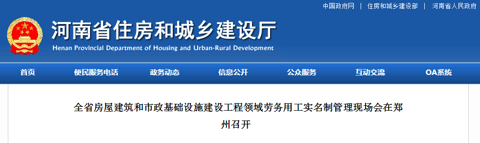 會上,印發了《河南省住房和城鄉建設廳關于在全省房屋建設和市政基礎設施工程建設領域推行勞務用工實名制管理的通知》。鄭州市城鄉建設委員會主任梁遠森介紹了鄭州市建設工程勞動用工實名制管理工作經驗。鄭州市建立了有法可依、有章可循、機制健全的勞動用工實名制管理體系,建成了建設勞務用工實名制管理信息系統,實現施工現場實名制刷卡考勤、勞務作業人員工資核算、發放確認、銀行代發、監督檢查一體化,做到了“底數清楚、信息暢通、資源共享、閉合管理”,所監管工程實名制刷卡考勤和銀行代發工資達到90%以上,有效地維護了農民工和施工企業雙方的合法權益。