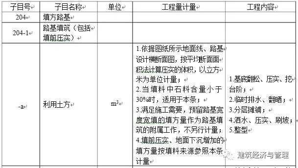 標(biāo)準(zhǔn)文件2018的工程量清單由子目號(hào)、子目名稱、單位、數(shù)量、單價(jià)、合價(jià)組成。工程量清單計(jì)量規(guī)則也由子目號(hào)、子目名稱、單位、工程量計(jì)量、工程內(nèi)容組成。這樣每個(gè)子目號(hào)與工程量清單的子目號(hào)一一對(duì)應(yīng),是承包人報(bào)價(jià)、發(fā)包人支付的依據(jù)。例如工程量清單計(jì)量規(guī)則204-1 路基填筑(包括填前壓實(shí)),摘錄如下