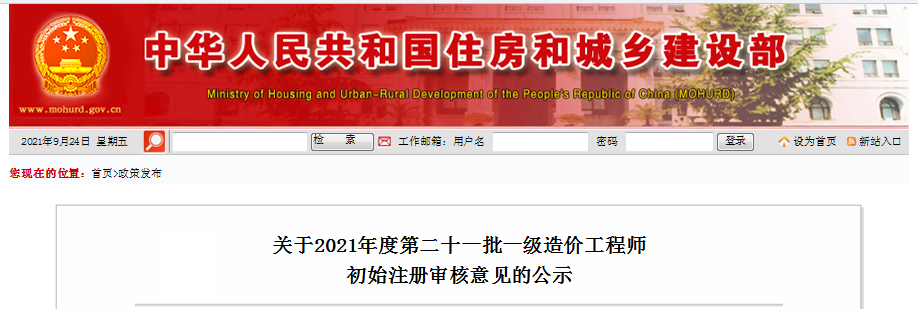 2021年第21批一級造價工程師初始注冊
