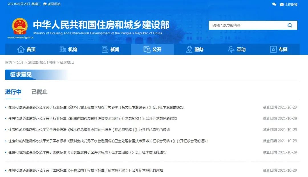 近日,住房和城鄉建設部發布了一批國家標準、行業標準公開征求意見,包括《主題公園工程技術標準(征求意見稿)》《節水型居民小區評價標準(征求意見稿)》《預制集成式無下水管道廁所的衛生處理裝置技術要求(征求意見稿)》《城市信息模型應用統一標準(征求意見稿)》《鋼結構高強度螺栓連接技術規程(征求意見稿)》《塑料門窗工程技術規程(局部修訂條文征求意見稿)》。