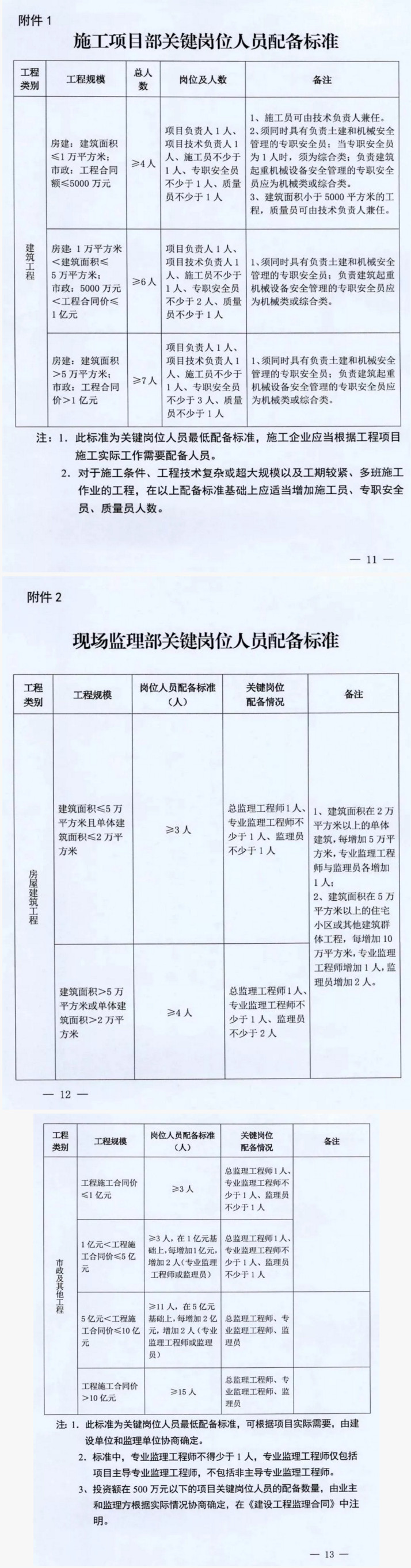 對施工項目部、現場監理部關鍵崗位人員數量進行優化縮減,僅規定不同規模最低崗位數量。