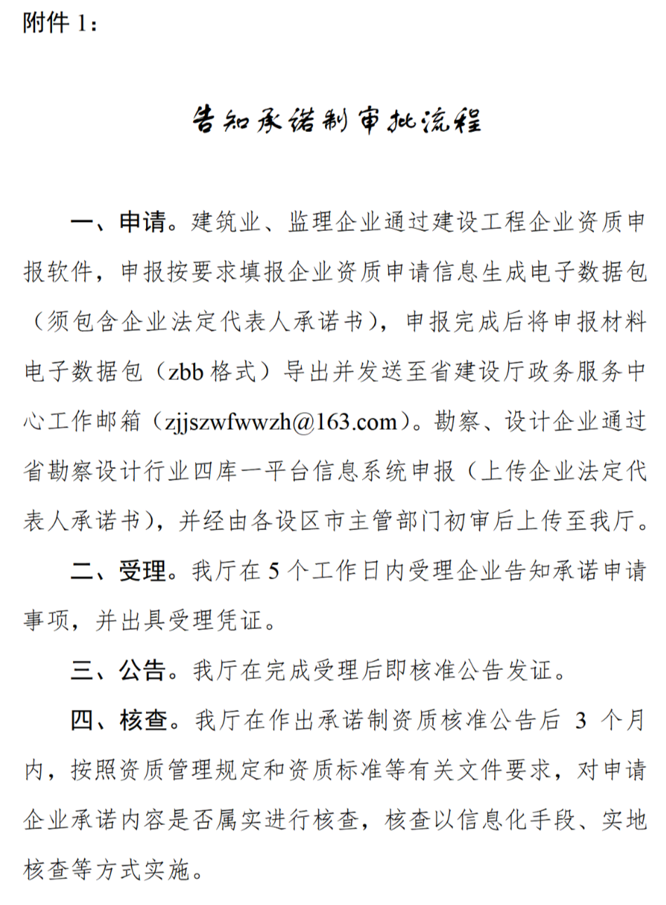 一、2022年8月1日起,住房城鄉(xiāng)建設(shè)部審批權(quán)限下放試點(diǎn)的工程勘察、設(shè)計(jì)、監(jiān)理甲級(jí)資質(zhì)和施工總承包、專業(yè)承包一級(jí)資質(zhì)全面推行告知承諾制審批(重新核定事項(xiàng)除外)。申報(bào)相關(guān)要求參照《關(guān)于印發(fā)<浙江省深化住房城鄉(xiāng)建設(shè)領(lǐng)域“證照分離”改革全覆蓋試點(diǎn)工作實(shí)施方案>的通知》(浙建〔2020〕11號(hào))執(zhí)行,審批流程和企業(yè)法定代表人承諾書(shū)詳見(jiàn)附件1、2。