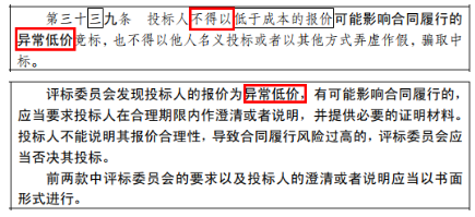 發(fā)現(xiàn)投標(biāo)人的報價為異常低價,有可能影響合同履行的,應(yīng)當(dāng)要求投標(biāo)人在合理期限內(nèi)作澄清或者說明,并提供必要的證明材料。不能說明其報價合理性,導(dǎo)致合同履行風(fēng)險過高的,應(yīng)當(dāng)否決其投標(biāo)。