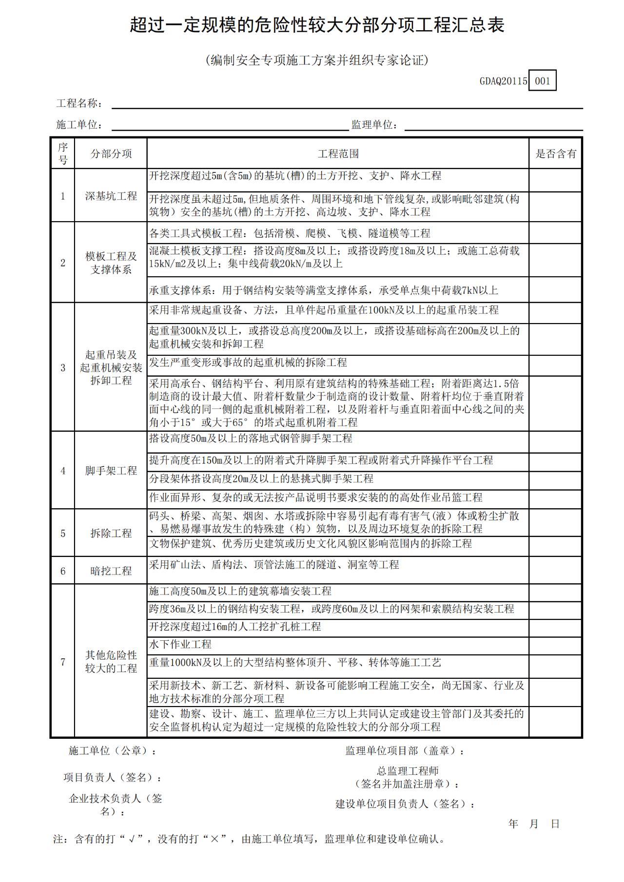 施工單位應在項目開工前建立本項目危險性較大分部分性工程清單,并根據施工現場實際動態完善危大工程清單。