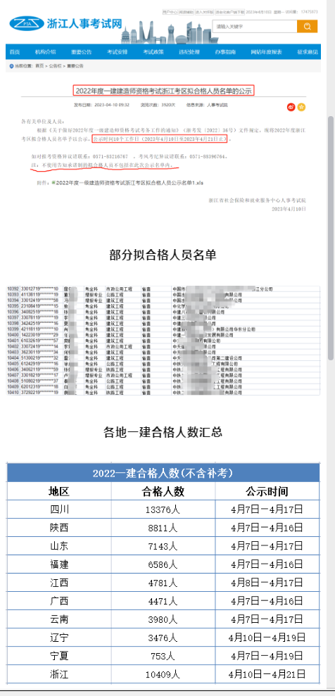今日新增!浙江省2022年一級(jí)建造師合格人員剛剛公示,10409人擬合格,除四川外,又一個(gè)超萬(wàn)人合格的地方。