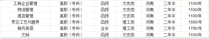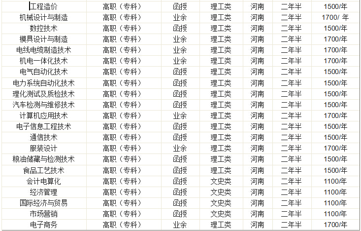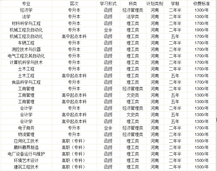 河南工業(yè)大學(xué)成人高等教育招生專業(yè)目錄